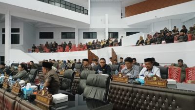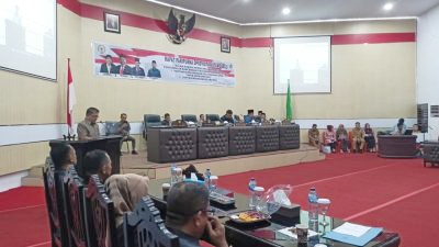 KOTAMOBAGU, DPRD- Dewan Perwakilan Rakyat Daerah (DPRD) Kota Kotamobagu mengelar rapat Paripurna Pembicaraan Tingkat I Penyampaian Rancangan Peraturan Daerah (Ranperda) tentang Laporan Pertanggungjawaban (LPJ) Pelaksanaan APBD Tahun Anggaran 2022 serta Ranperda Penyelenggaraan Kearsipan, Senin 10 Juli 2023.