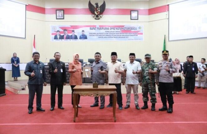 Rapat Paripurna yang dilaksanakan di Gedung DPRD Kota Kotamobagu tersebut, dihadiri Ketua DPRD Kota Kotamobagu Meiddy Makalalag, S.T., Wakil Ketua DPRD Kota Kotamobagu, Herdy Korompot, S.E., Wakil Ketua DPRD Kota Kotamobagu, Syarifuddin. J. Mokodongan, S.H., para anggota DPRD Kota Kotamobagu, Dandim 1303 Bolaang Mongondow, Letkol. Inf. Topan Angker, S.Sos., Kapolres Kotamobagu, AKBP. Dasveri Abdi, S.I.K., para asisten, serta pimpinan Organisasi Perangkat Daerah (OPD) dilingkungan Pemerintah Daerah Kota Kotamobagu, serta para Camat, Lurah dan Sangadi se – Kota Kotamobagu. (al)