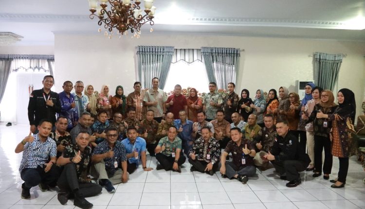 KOTAMOBAGU—Wakil Wali Kota Kotamobagu, Nayodo Koerniawan didampingi Ketua Tim Penggerak PKK Kota Kotamobagu, Anki Taurina Mokoginta menerima ucapan selamat memasuki purna tugas dari pimpinan OPD Pemkot Kotamobagu, Jumat 22 September 2023.