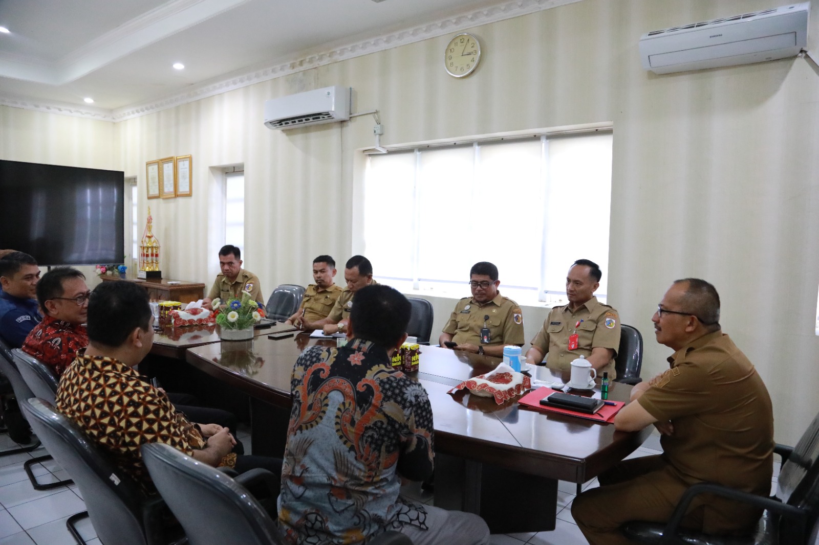 KOTAMOBAGU- Pj Wali Kota Kotamobagu menerima kunjungan Ketua dan Anggota Komisi Pemilihan Umum (KPU) Kota Kotamobagu, di ruang kerjanya, Selasa 3 Oktober 2023.