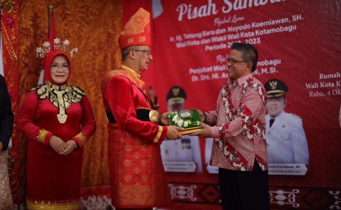 KOTAMOBAGU- Pemerintah Kota (Pemkot) Kotamobagu gelar Pisah Sambut Wali Kota dan Wakil Wali Kota dari Pejabat Lama ke Penjabat Baru Sekaligus Ketua Tim Penggerak PKK (TP-PPK) Kota Kotamobagu dari Pengurus Lama ke Pengurus Baru, di aula rumah Dinas Wali Kota, Rabu (04/10/2023).