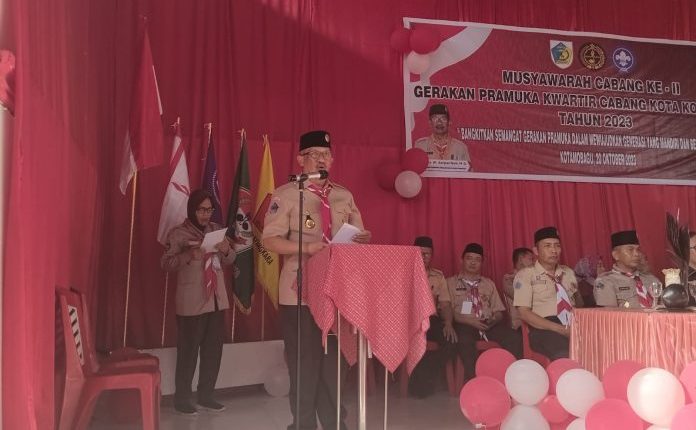 KOTAMOBAGU- Penjabat Wali Kota Kotamobagu Dr. Drs. Asripan Nani, M.Si menghadiri Musyawarah Cabang Ke- 2 Gerakan Pramuka Kwartir Cabang Kota Kotamobagu Tahun 2023 bertempat di aula SMAN I Kotamobagu, Jumat (20/10/2023).