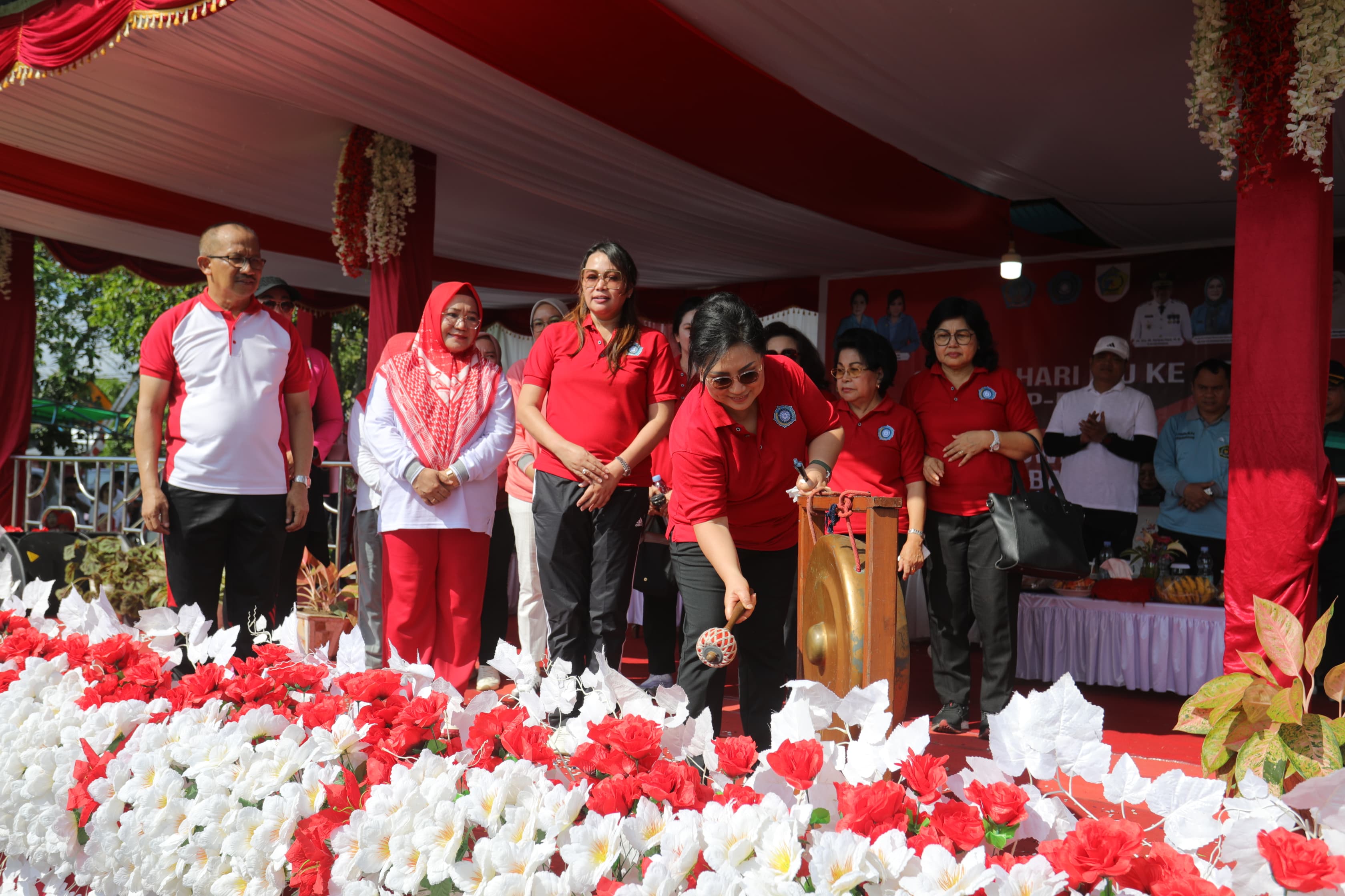 Turut Hadir: Ketua Tim Penggerak PKK Provinsi Sulawesi Utara, Ibu. Ir. Rita Maya Dondokambey Tamuntuan,dan Sekertaris Tim Penggerak PKK Provinsi Sulawesi Utara, Ibu. dr. Kartika Devi Tanos, MARS., Kapolres Kotamobagu, AKBP. Dasveri Abdi., S.I.K., perwakilan Forkopimda Kota Kotamobagu, Mantan Bupati Bolaang Mongondow yang juga Ketua BKMT Provinsi Sulawesi Utara, Dra. Hj. Yasti Soepredjo Mokoagow, Ketua Tim Penggerak PKK Kota Kotamobagu, Hj. Siti Fatmah Fitriana Nani Buhang, S.E., Ketua Dharma Wanita Persatuan Kota Kotamobagu, Vera Mokoginta Tawil, S.E., Ketua KIAD Kota Kotamobagu, Nelmi Makalalag Angkara, S.E., para Asisten, pimpinan OPD dilingkungan Pemerintah Kota Kotamobagu,para pimpinan Organisasi Wanita se – Kota Kotamobagu, jajaran pengurus Tim Penggerak PKK Provinsi Sulawesi Utara, jajaran pengurus Tim Penggerak PKK Kota Kotamobagu, pengurus Dharma Wanita Persatuan Kota Kotamobagu, ASN dillingkungan Pemerintah Kota Kotamobagu serta Masyarakat Kota Kotamobagu. (del)