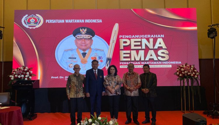 KOTAMOBAGU- Pj Wali Kota Kotamobagu, Dr. Drs. Hi. Asripan Nani, M.Si menghadiri penganugerahan penghargaan Pena Emas dari Persatuan Wartawan Indonesia kepada Gubernur Sulawesi Utara, Prof. Dr. (H.C.) Olly Dondokambey. S.E, Kamis 7 Desember 2023, di Hotel Borobudur, Jakarta.