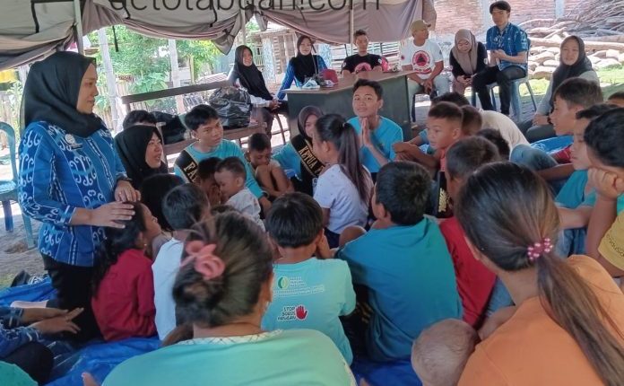 KOTAMOBAGU- Pemerintah Kota (Pemkot) Kotamobagu melalui Dinas Pemberdayaan Perempuan dan Perlindungan Anak (DP3A) kolaborasi dengan Badan Penanggulangan Bencana Daerah (BPBD) Kotamobagu menggelar Trauma Healing bagi anak- anak terdampak banjir di RT 24 Kelurahan Gogagoman, Kamis (7/12/2023)