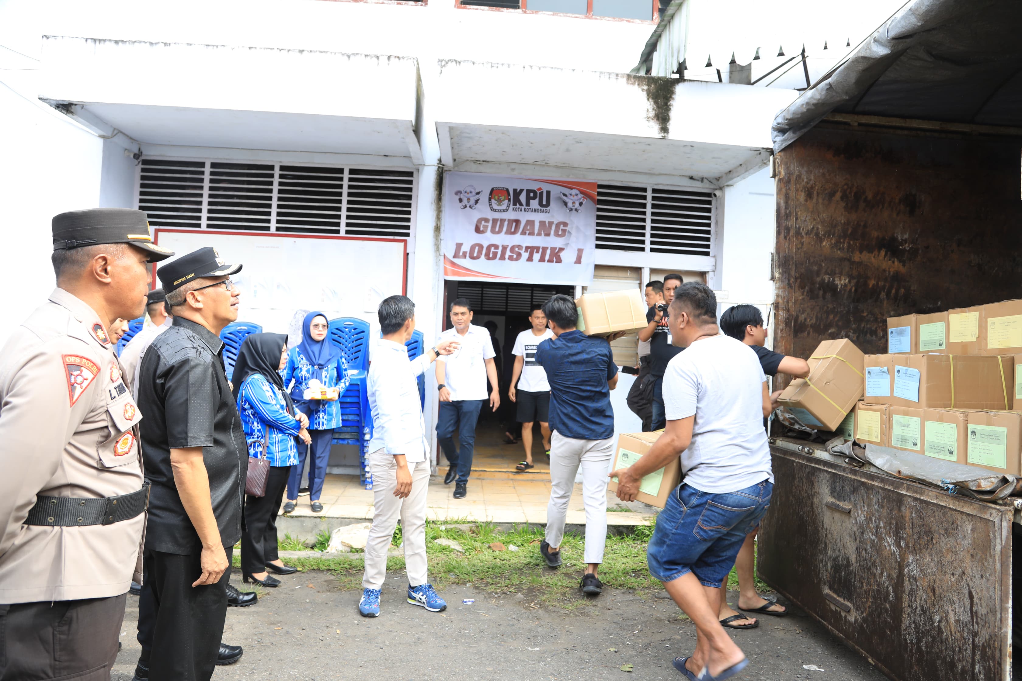 KOTAMOBAGU- Pj. Wali Kota, Dr. Drs. Hi. Asripan Nani., M.Si meninjau kesiapan logistik pemilu Tahun 2024 di Kota Kotamobagu, di Kantor KPU Kotamobagu, Kamis 21 Desember 2023.