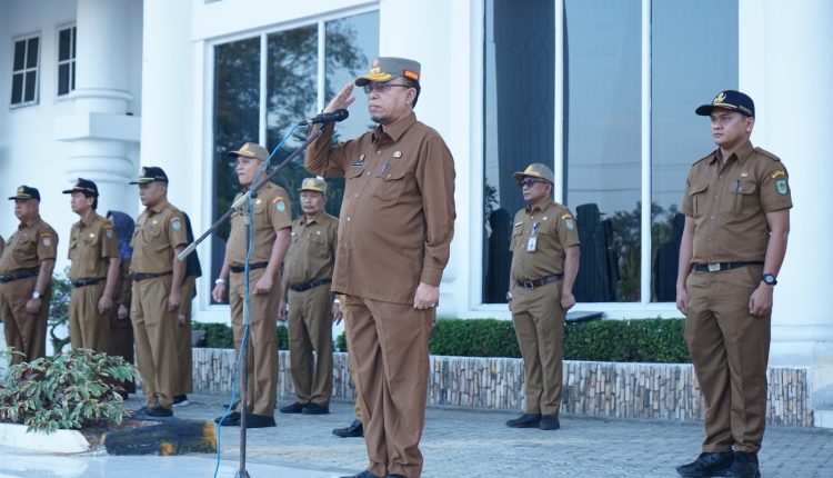 ASAHAN – Sekretaris Daerah (Sekad) Kabupaten Asahan, Sumatra Utara, Drs. John Hardi Nasution, M.Si memimpin apel gabungan bulan Februari Tahun 2024 di halaman Kantor Bupati Asahan, Selasa (6/2/2024).