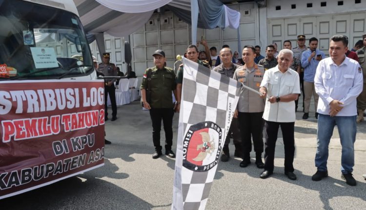 ASAHAN – Bupati Asahan, H Surya melepas pendistribusian logistik pemilu 2024 ke 25 Kecamatan Desa/Kelurahan se-Kabupaten Asahan, Provinsi Sumatra Utara.