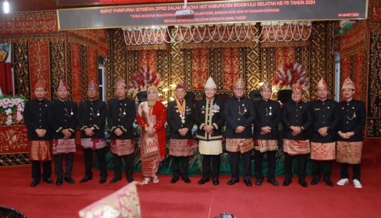 BENGKULU SELATAN – DPRD Kabupaten Bengkulu Selatan menggelar rapat paripurna istimewa dalam rangka Hari Ulang Tahun (HUT) Ke 75 Kabupaten Bengkulu Selatan, Jum’at (08/03/2024).
