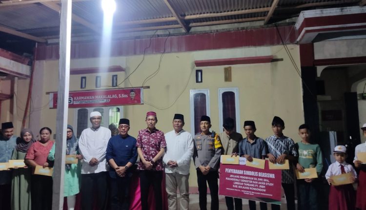 Usai acara buka puasa dan sholat Magrib berjamaah, Bupati bersama Wabup serta General Manajer PT. JRBM menyerahkan bantuan Beasiswa dari PT. JRBM untuk para pelajar di desa tersebut.