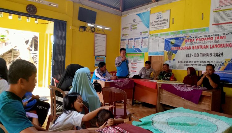 BENGKULU SELATAN – Pemerintah Desa Padang Jawi, Kecamatan Bunga Mas, Kabupaten Bengkulu Selatan melaksanakan penyaluran Bantuan Langsung Tunai (BLT-DD) Tahun Anggaran 2024, Jum’at (05/04/2024).