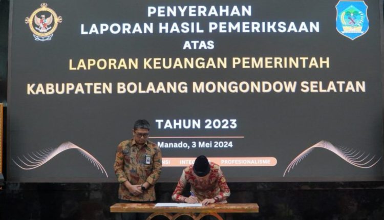 BOLSEL – Pemerintah Kabupaten Bolaang Mongondow Selatan (Bolsel) dibawah kepemimpinan Bupati Hi. Iskandar Kamaru,S.Pt, M.Si bersama Wakil Bupati (Wabup) Deddy Abdul Hamid, kembali meraih Opini Wajar Tanpa Pengecualian (WTP) atas Laporan Keuangan Pemerintah Daerah (LKPD) Tahun 2023, digedung kantor BPK Prov. Sulut di Manado, Jumat (3/5/2024).