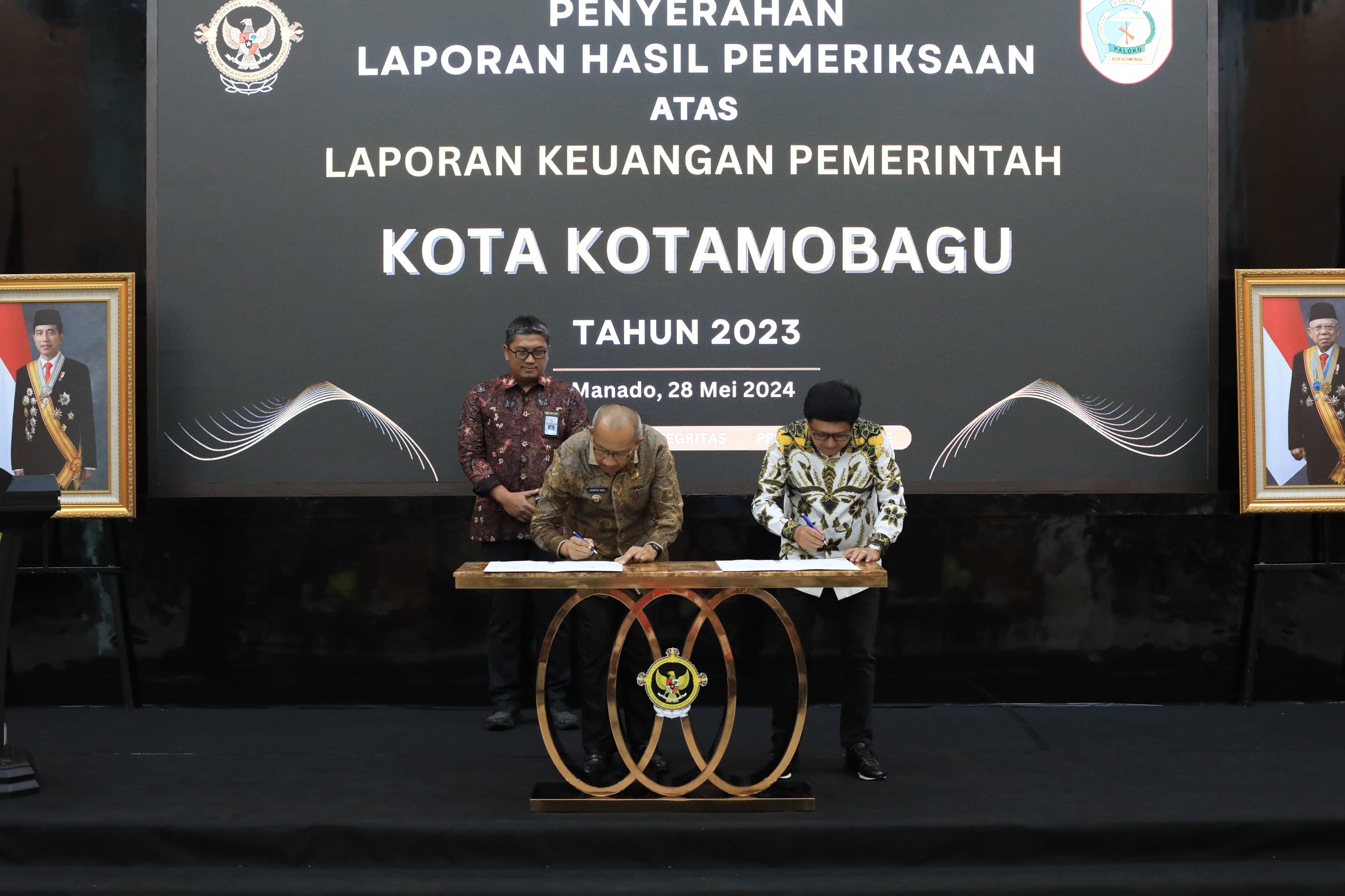 KOTAMOBAGU – Pemerintah Kota Kotamobagu menerima penghargaan Opini Wajar Tanpa Pengecualian (WTP) atas Laporan Keuangan Pemerintah Daerah (LKPD) Kota Kotamobagu Tahun Anggaran 2023 dari BPK RI Perwakilan Provinsi Sulawesi Utara, Selasa, 28 Mei 2024, di Aula Gedung BPK RI Perwakilan Sulut, Jalan 17 Agustus, di Manado.