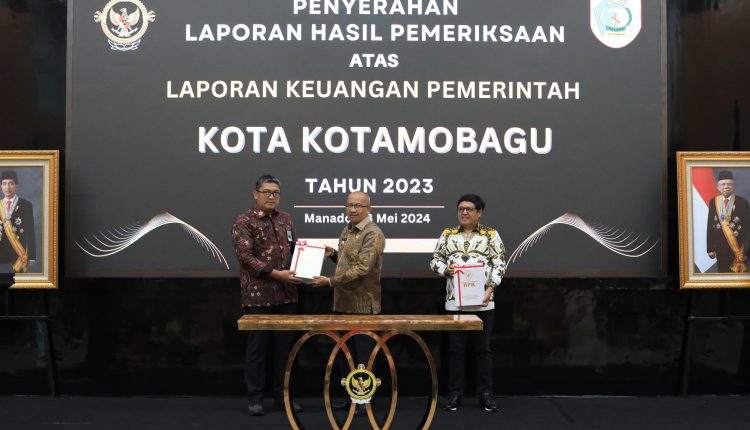 KOTAMOBAGU – Pemerintah Kota Kotamobagu menerima penghargaan Opini Wajar Tanpa Pengecualian (WTP) atas Laporan Keuangan Pemerintah Daerah (LKPD) Kota Kotamobagu Tahun Anggaran 2023 dari BPK RI Perwakilan Provinsi Sulawesi Utara, Selasa, 28 Mei 2024, di Aula Gedung BPK RI Perwakilan Sulut, Jalan 17 Agustus, di Manado.