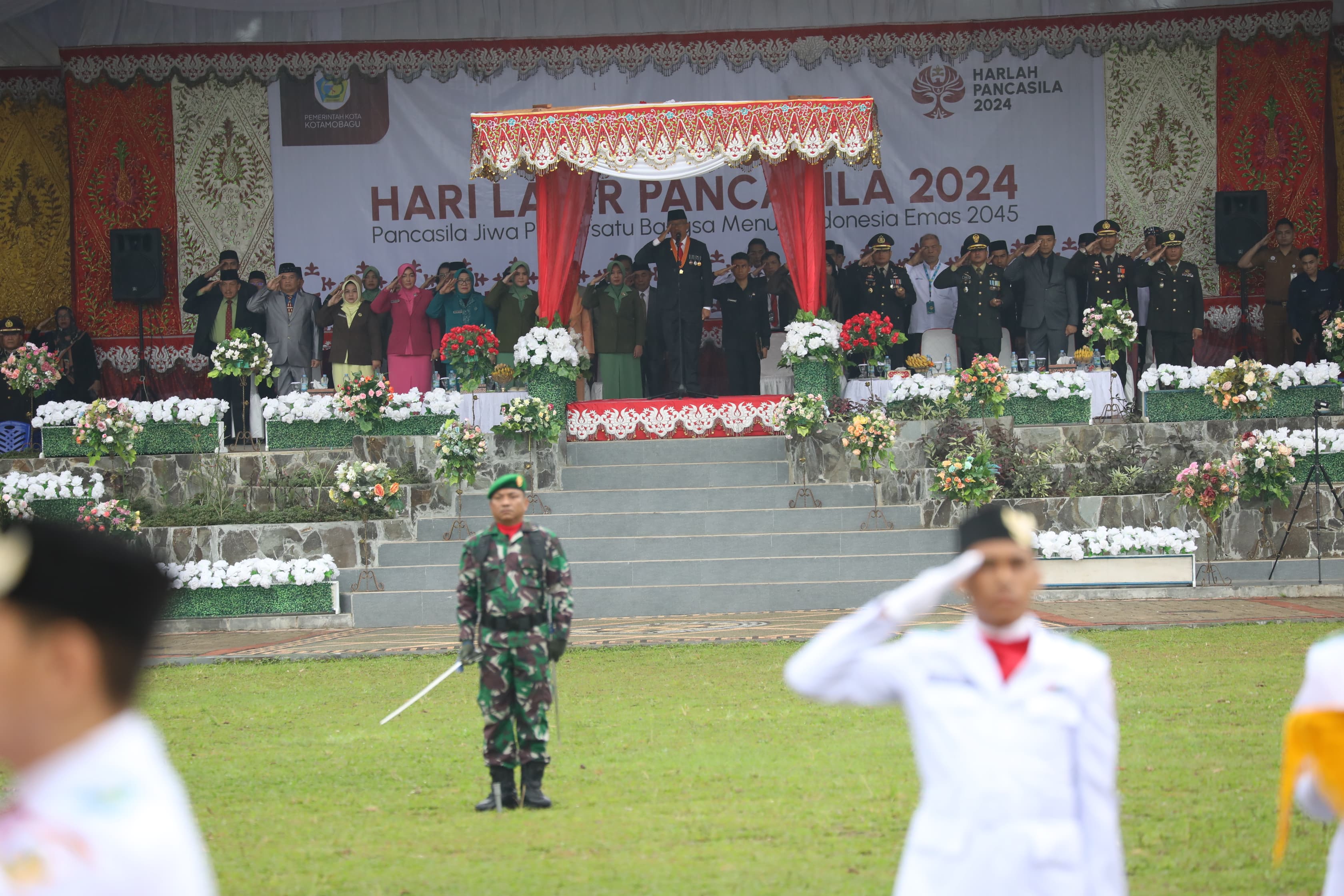 KOTAMOBAGU – Pj. Wali Kota Kotamobagu, Dr. Drs. Hi. Asripan Nani., M.Si, menjadi Inspektur Upacara (Irup) peringatan Hari Lahir Pancasila Tahun 2024, yang dilaksanakan di Alun – alun Boki Hontinimbang, Kotamobagu, Sabtu 1 Juni 2024.