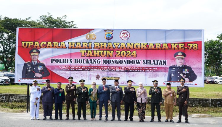 BOLSEL – Bupati Bolaang Mongondow Selatan Hi Iskandar Kamaru, S.Pt M.Si bersama Wakil Bupati Deddy Abdul Hamid, menghadiri Upacara peringatan Hari Bhayangkara ke 78 pada Senin (1/7/2024) .