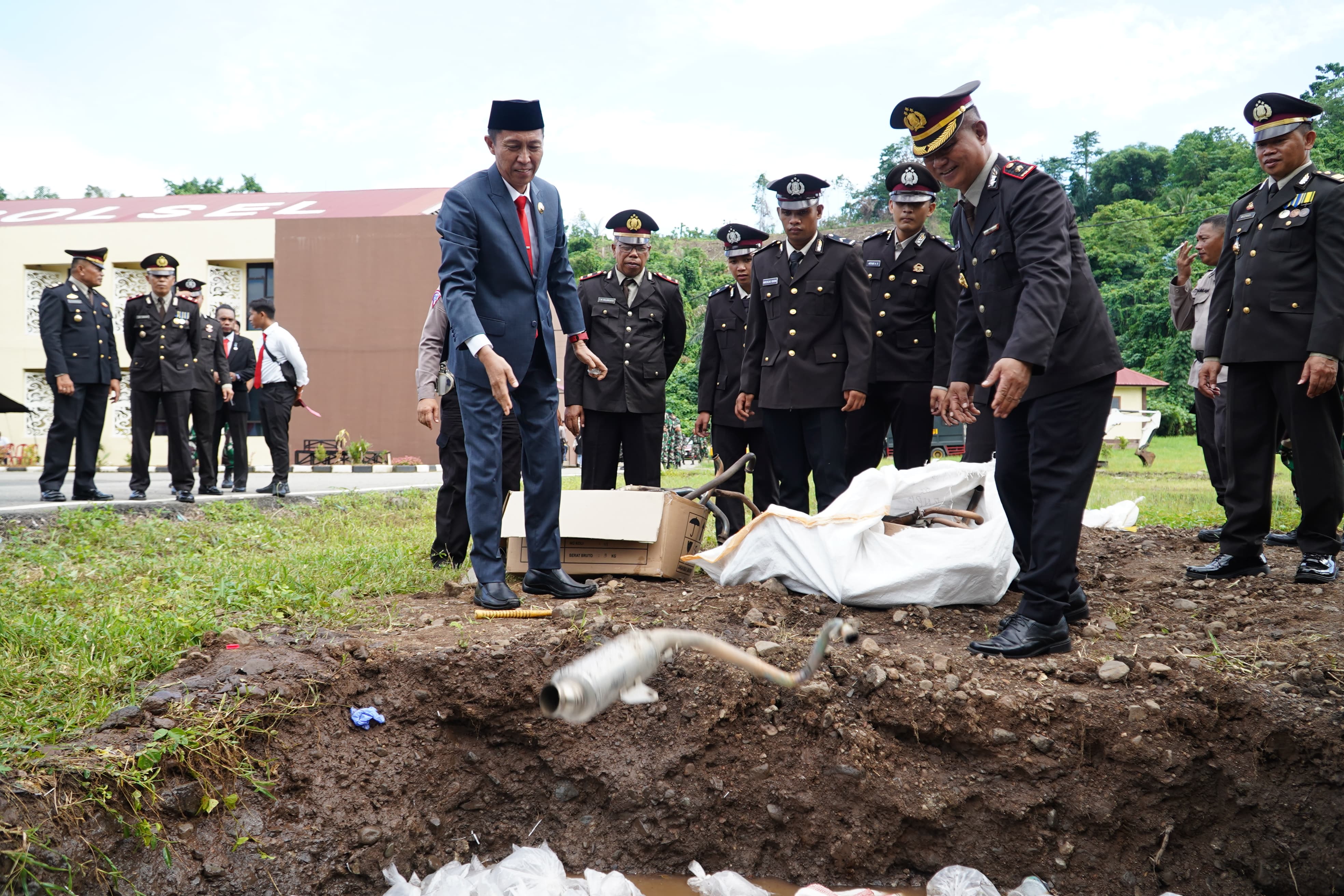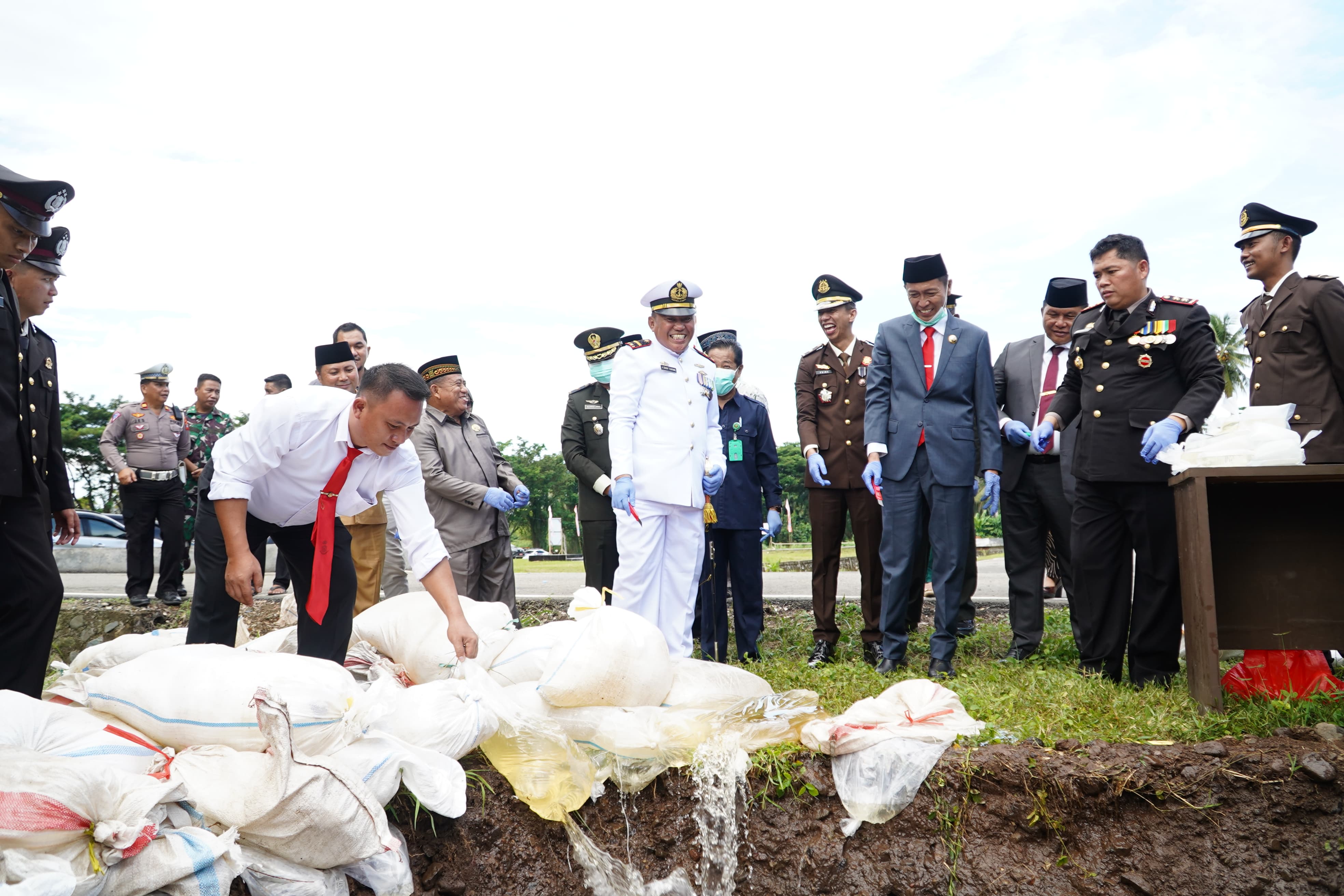 Usai pelaksanaan upacara, Iskandar dan Deddy bersama Kapolres melakukan pemusnahan ber sama – sama barang bukti (Babu).