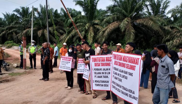 Aksi demo tersebut dilakukan masyarakat desa Tanjung Selamat karena kecewa dengan perusahaan PT. Anak Tasik yg diduga merugikan dan tidak berpihak kepada masyarakat setempat.