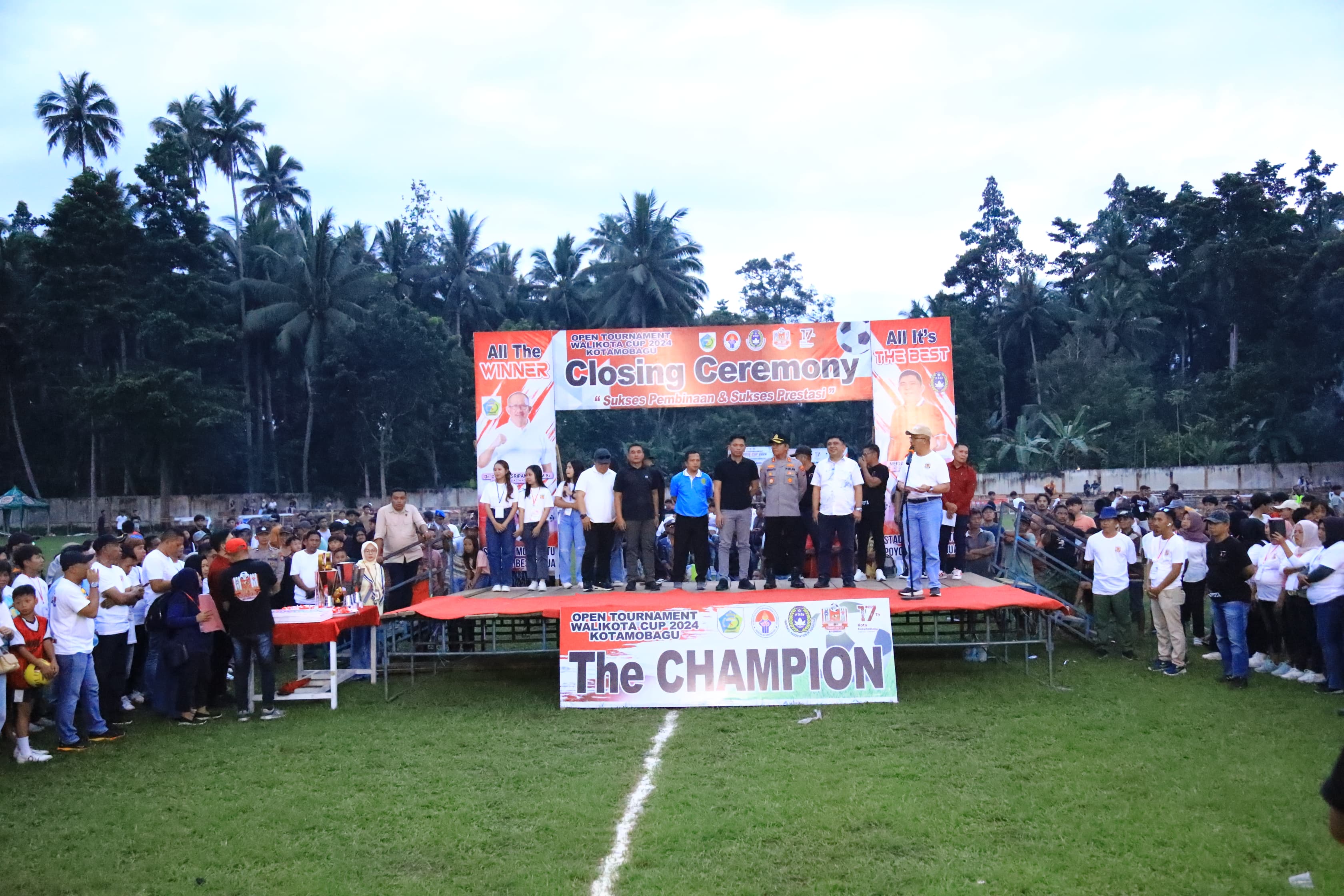 KOTAMOBAGU – Pj. Wali Kota, Dr. Drs. Hi. Asripan Nani., M.Si, resmi menutup Tournament Sepak Bola Wali Kota Cup Tahun 2024, di Stadion Motobatu, Desa Poyowa Besar Dua, Sabtu 13 Juli 2024.