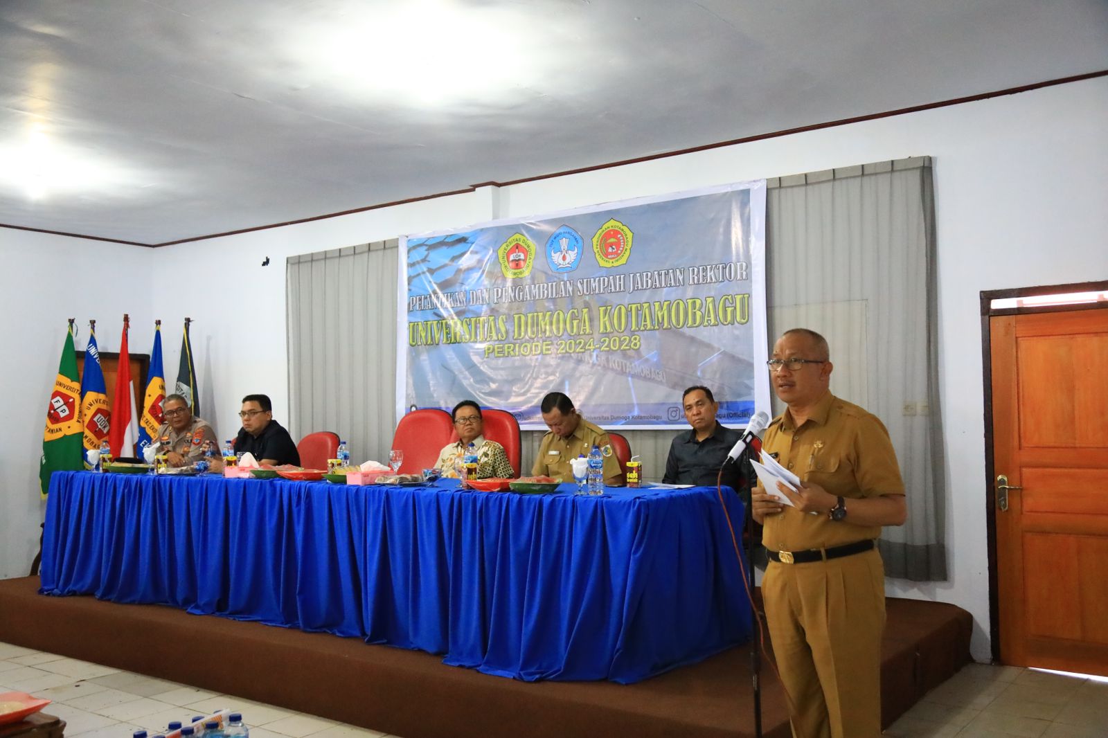 “Kita semua bersyukur, karena hari ini kita dapat berkumpul di tempat ini, dalam suasana baru, dalam harapan baru, dalam nuansa baru, dalam rangka pelantikan Rektor Universitas Dumoga Kotamobagu. saya merasa haru karena hari ini adalah langkah awal dari 4 Tahun kedepan,” ujarnya.