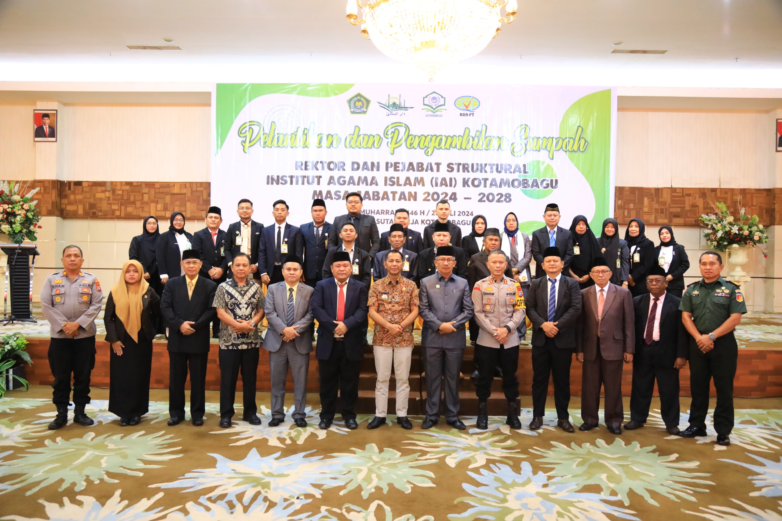 Turut Hadir: Pj. Bupati Bolaang Mongondow., dr. Jusnan. C. Mokoginta., MARS., Kapolres Bolaang Mongondow., Muhammad Chaidir., S.H., S.I.K., M.M., Perwakilan Forkopimda Kotamobagu, Anggota DPRD Kota Kotamobagu., Suryadi Baso., S.P., M.E., Ketua Yayasan Darul Muttaqin., Drs. H. Zainul. A. Lantong., Kepala Kantor Kementerian Agama Kota Kotamobagu., Jamaluddin Lamato, S.Pd.I., M.Pd., Rektor Institut Agama Islam (IAI) Kotamobagu Periode 2024 – 2028., Dr. Muliadi Mokodompit., S.H., S.E., M.Si., para pimpinan Perguruan Tinggi., Institut Agama Islam Kotamobagu, serta Mahasiswa Institut Agama Islam Kotamobagu.