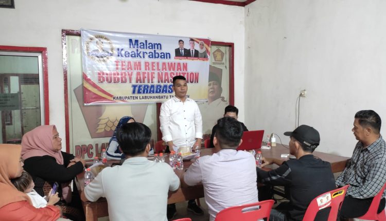 Diketahui saat ini Kepengurusan Team Relawan Bobby Afif Nasution (Terabas) sudah terbentuk hingga ke kordinator kecamatan di Sembilan kecamatan yang ada di Kabupaten Labuhanbatu.(MS).