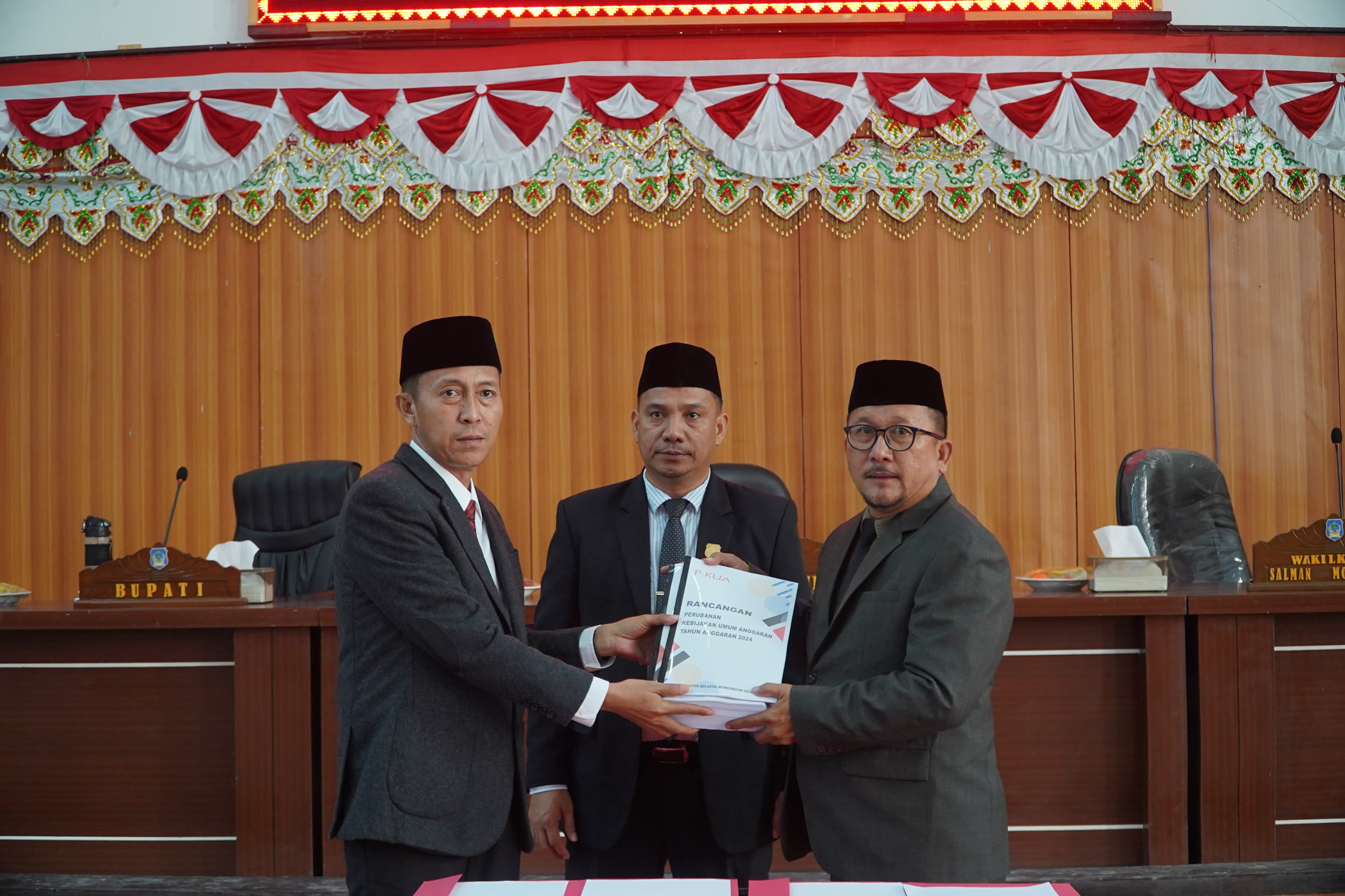 saat berpidato Bupati mengatakan bahwa dalam rancangan perubahan KUA-PPAS T.A 2024, Pemerintah Daerah tetap menyelaraskan arah kebijakan pembangunan daerah dengan arah pembangunan nasional dalam mendukung program prioritas dengan meningkatkan kualitas belanja yang lebih efektif dan terarah