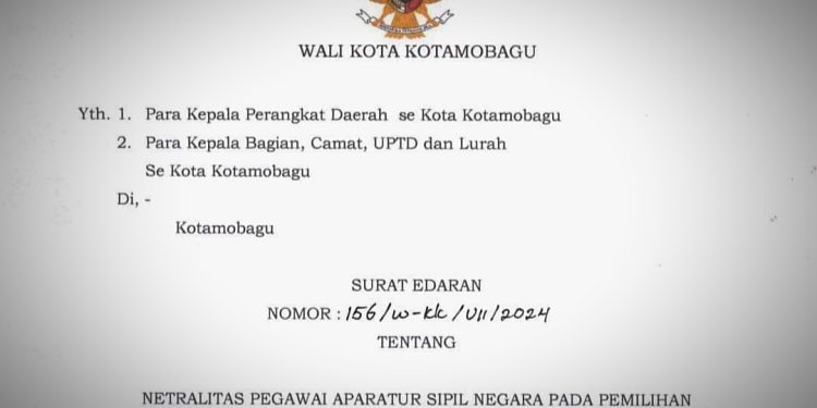 Hal tersebut ditegaskan melalui surat edaran Wali Kota Kotamobagu nomor: 156/W-KK/VII/2024, tentang netralitas ASN pada Pilkada serentak tahun 2024.