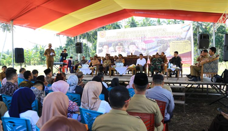 KOTAMOBAGU- Penjabat Wali Kota Kotamobagu Dr Drs Hi Asripan Nani MSi, Selasa 6 Juli 2024 menghadiri serta melakukan peletakkan batu pertama pembangunan kampus Universitas Dumoga Kotamobagu (UDK) yang berlokasi di Desa Poyowa Besar Satu Kecamatan Kotamobagu Selatan.