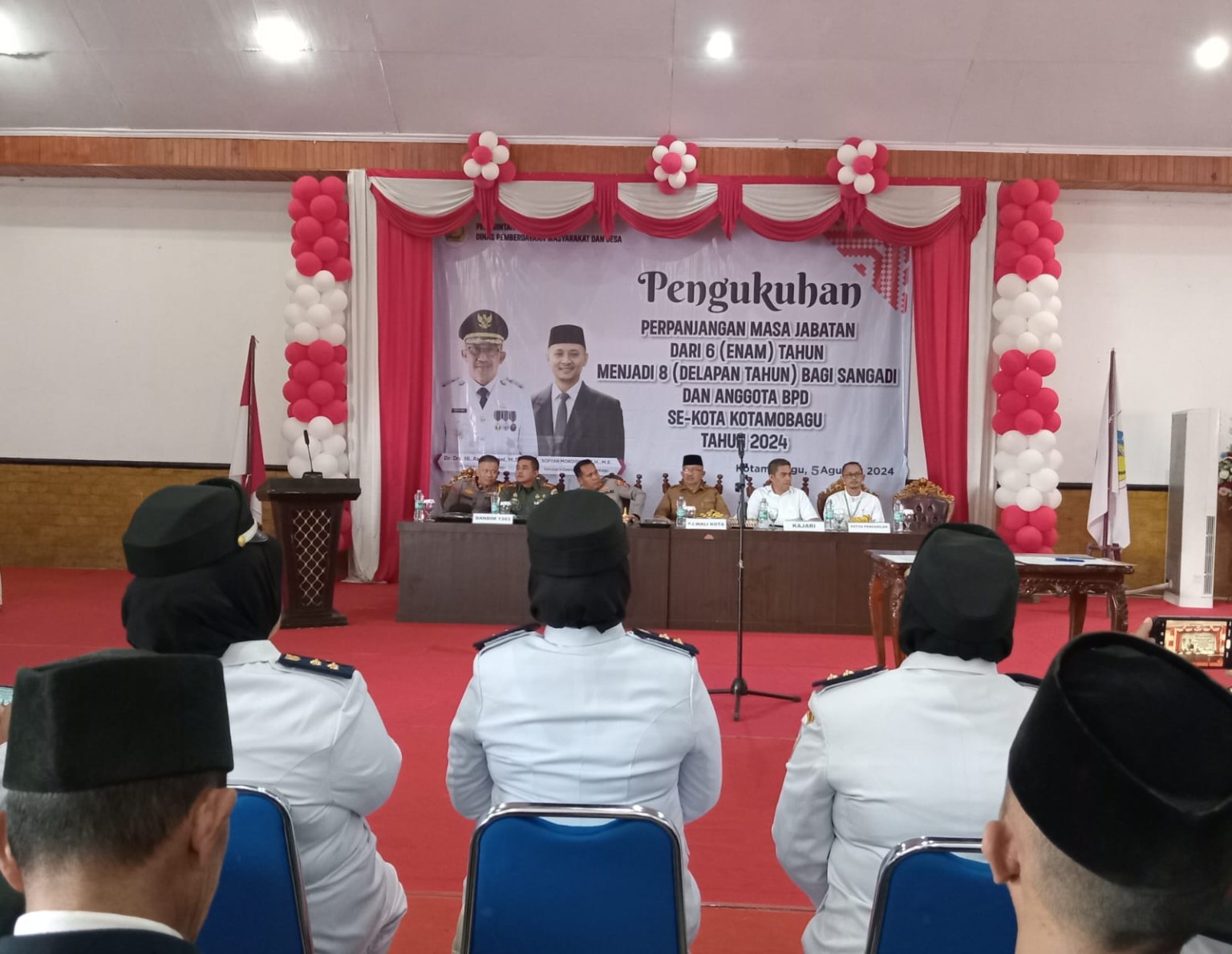 KOTAMOBAGU- Pemerintah Kota (Pemkot) Kotamobagu menggelar Pengukuhan Perpanjangan Masa Jabatan dari enam (6) tahun menjadi delapan (8) tahun bagi Kepala Desa dan Anggota Badan Permusyawaratan Desa (BPD) se- Kota Kotamobagu Tahun 2024.