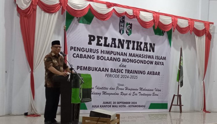 KOTAMOBAGU -Penjabat Wali Kota Kotamobagu Abdullah Mokoginta menghadiri Pelantikan Pengurus Himpunan Mahasiswa Islam (HMI) Cabang Bolaang Mongondow Raya, sekaligus membuka secara resmi Basic Training Akbar Periode 2024 – 2025, yang dilaksanakan di Aula Kantor Walikota Kotamobagu, Jumat 20 September 2024.