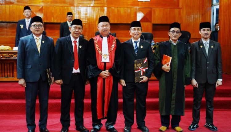 Rangkaian acara rapat paripurna istimewa pengucapan sumpah/janji pimpinan DPRD berjalan lancar dan khidmat. (thor)