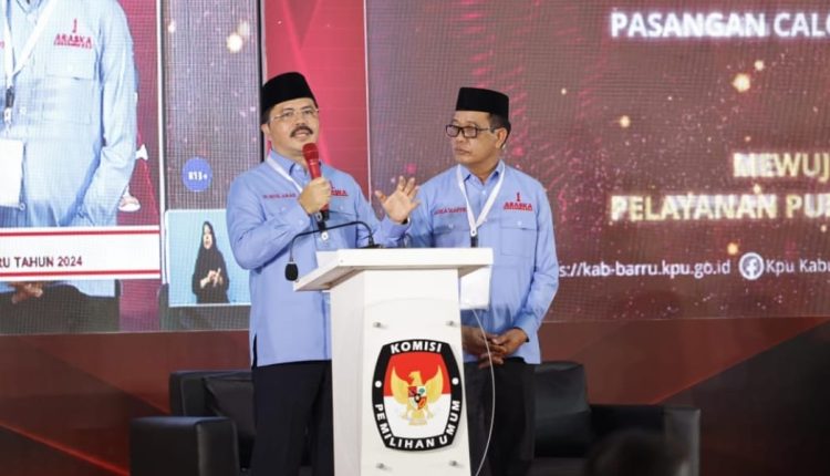 Dengan santun H. Aras menyampaikan Visi Misi dengan teklane “Barru” Emas (Empati, Maju, sejahtera dan religius)