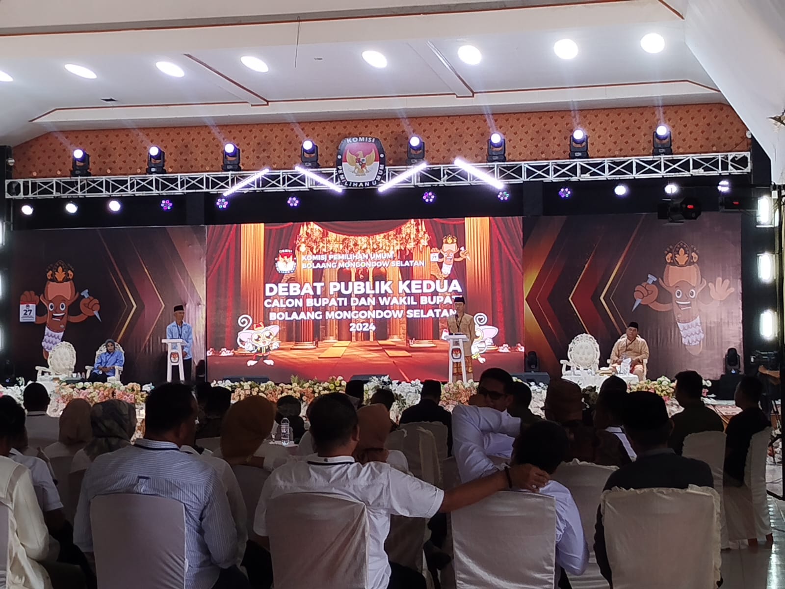 Bolsel – Badan Pengawas Pemilu (Bawaslu) Kabupaten Bolaang Mongondow Selatan (Bolsel) melaksanakan pengawasan terhadap kegiatan Debat Kandidat ke-2 Pemilihan Kepala Daerah (Pilkada) yang diselenggarakan oleh Komisi Pemilihan Umum (KPU) di Gedung Gren Fajar, Desa Soguo, Kecamatan Bolaang Uki, pada Sabtu, (2/11/2024).