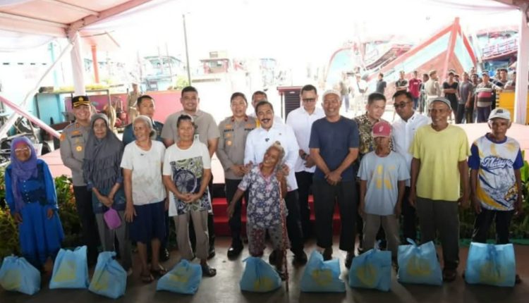 Medan – Wali Kota Medan Bobby Nasution mendampingi Menteri Imigrasi dan Pemasyarakatan RI, Jenderal Polisi (Purn) Agus Andrianto, dalam kegiatan bakti sosial pembagian sembako kepada ribuan warga di PT Belawan Samudera Abadi, Pelabuhan Perikanan Gabion Belawan, Rabu (18/12/ 2024 )