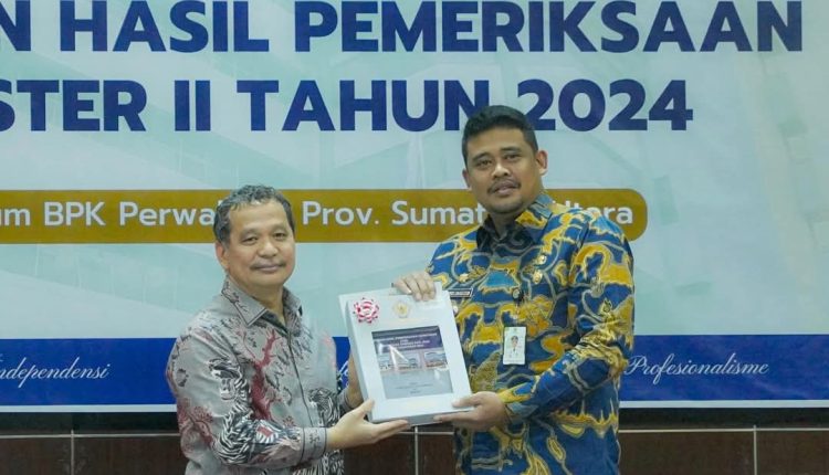 Medan – Wali Kota Medan Bobby Afif Nasution menerima langsung Laporan Hasil Pemeriksaan (LHP) Semester II Tahun 2024 dari Badan Pemeriksa Keuangan (BPK) RI Perwakilan Provinsi Sumatera Utara. Penyerahan tersebut dilakukan oleh Kepala Perwakilan BPK Sumut, Eydu Oktain Panjaitan, di Auditorium BPK Perwakilan Sumut, Jumat (27/12/2024). Acara ini turut dihadiri sejumlah pejabat daerah.
