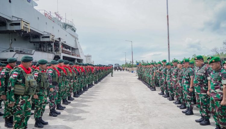 Ambon – Kasdam XV/Pattimura Brigjen TNI Dr. Nefra Firdaus, S.E., M.M., mewakili Pangdam XV/Pattimura Mayjen TNI Putranto Gatot Sri Handoyo, S.Sos., M.M., resmi melepas keberangkatan Satuan Tugas Pengamanan Perbatasan (Satgas Pamtas) RI-PNG Mobile Yonif 733/Masariku Tahun Anggaran 2025. Upacara pelepasan berlangsung di Dermaga Guspurla Koarmada III Tawiri, Ambon, pada Jumat (3/1/2025).