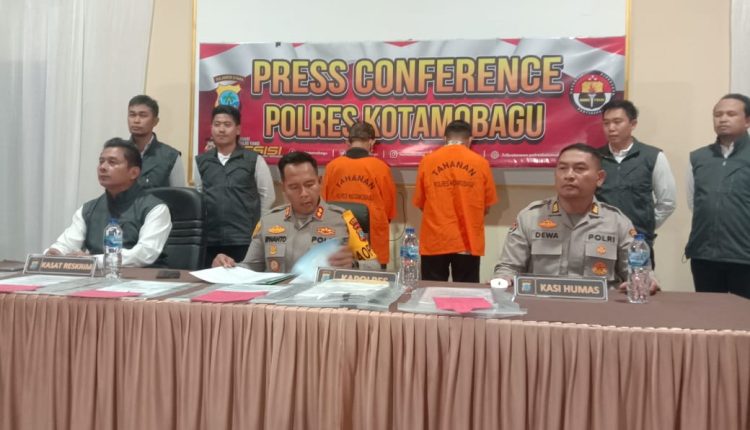 Polres Kotamobagu resmi menetapkan 2 orang tersangka yaitu oknum sangadi desa Bakan berinisial HM (54 tahun) bersama seorang ASN yang juga merupakan kontraktor pelaksana berinisial JK (57 Tahun) setelah di periksa oleh penyidik unit tindak pidana korupsi satuan reskrim Polres Kotamobagu Senin (6/1/25) siang bertempat di Mapolres Kotamobagu.
