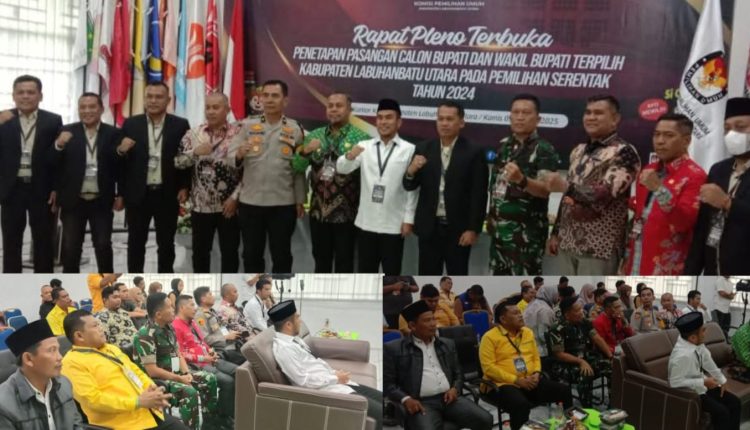 Labuhanbatu Utara – Polres Labuhanbatu menerapkan pengamanan ketat dalam Rapat Pleno Terbuka Penetapan Pasangan Calon Bupati dan Wakil Bupati Terpilih Kabupaten Labuhanbatu Utara pada Pemilihan Serentak Tahun 2024. Kegiatan tersebut digelar pada Kamis (9/1/2025) di Aula Kantor KPU Labuhanbatu Utara, Jalan Utama Wonosari, Kelurahan Aek Kanopan, Kecamatan Kualuh Hulu.