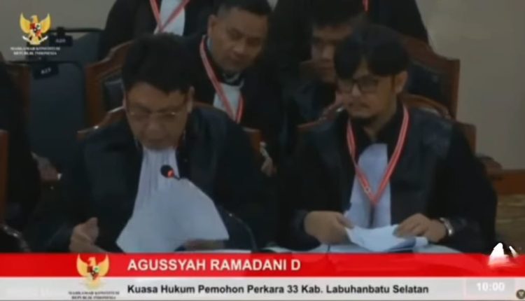 Hal tersebut disampaikan oleh kuasa hukum pemohon, Agussyah Ramadani D, dalam Sidang Pemeriksaan Pendahuluan Perkara Nomor 33/PHPU.BUP-XXIII/2025 tentang Perselisihan Hasil Pemilihan Umum (PHPU) Bupati Labuhanbatu Selatan yang digelar pada Selasa (14/1/2025) di Ruang Sidang Panel 2, Gedung 2 Mahkamah Konstitusi (MK). Sidang tersebut dipimpin oleh Wakil Ketua MK, Saldi Isra.