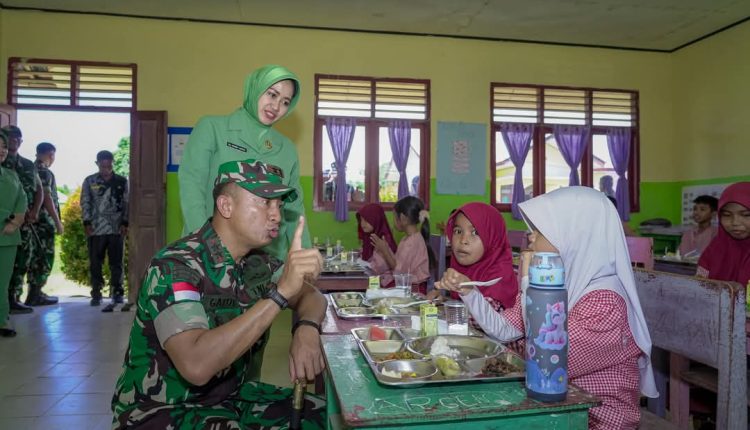 Dalam kunjungannya, Pangdam melihat langsung antusiasme para siswa yang menikmati hidangan bergizi.