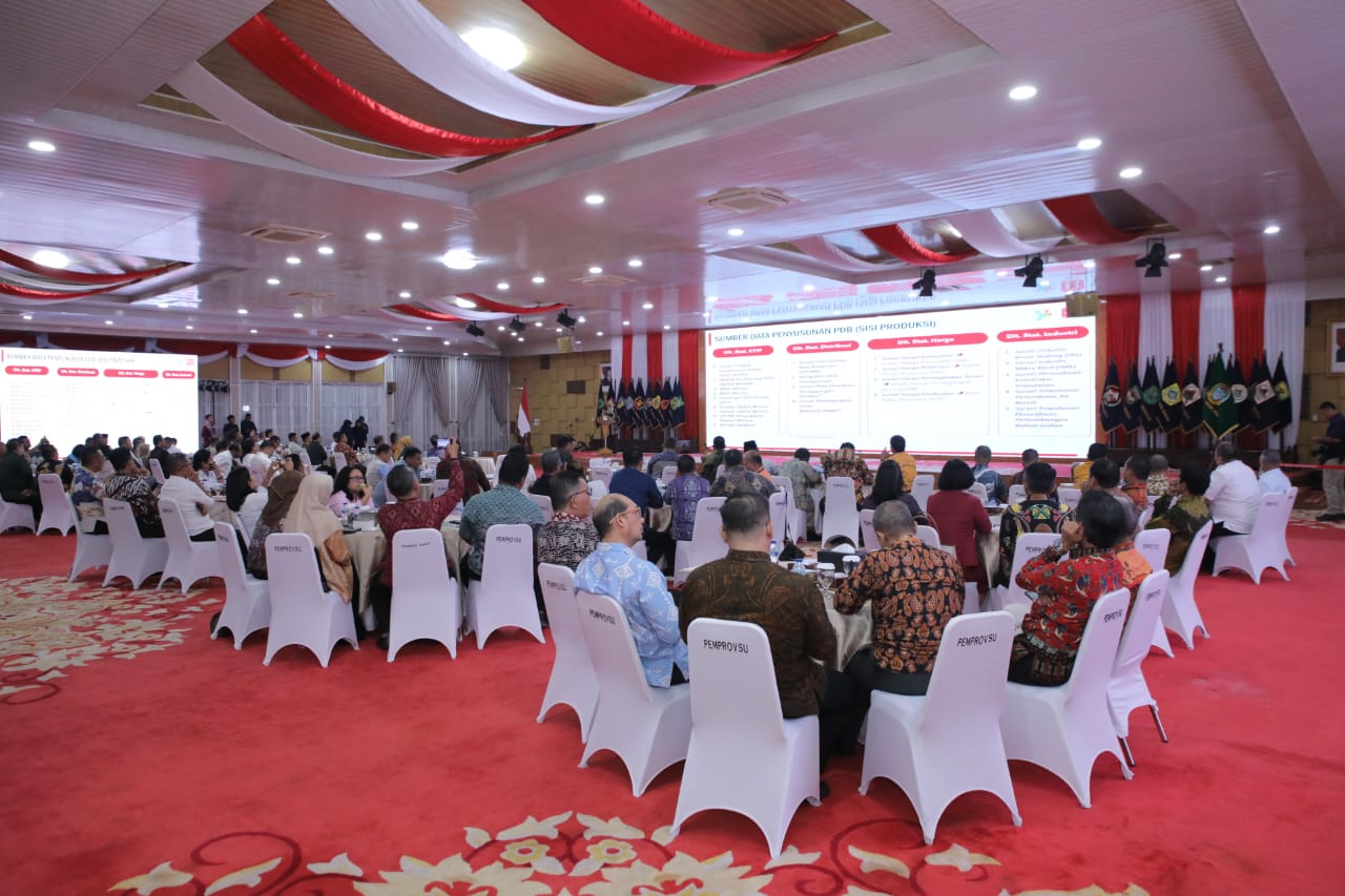 Rapat dipimpin oleh Gubernur Muhammad Bobby Afif Nasution dan dihadiri para bupati/wali kota se-Sumatera Utara, Kepala BPS RI Amalia Adininggar Widyasanti, Kepala Perum Bulog Sumut Budi Cahyanto, serta Kepala Perwakilan Bank Indonesia (BI) Sumut Dr. Rudi Brando Hutabarat. Pertemuan ini menjadi forum koordinasi lintas sektor untuk menyamakan langkah pemerintah daerah, lembaga statistik, lembaga moneter, dan penyedia cadangan pangan. Fokus utama rapat adalah membahas arah pertumbuhan ekonomi Sumut, menjaga stabilitas harga, serta memperkuat sinergi melalui program simultan Bulog Sumut berupa intervensi pasar lewat Program Pangan Murah yang akan dilaksanakan serentak di kabupaten/kota.