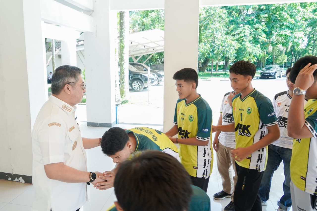 Kontingen Futsal Barru yang berjumlah 15 orang pemain dan 8 ofisial, akan bertanding di Kota Makassar, dengan Firdaus sebagai kapten tim. Turut hadir dalam kegiatan pelepasan tersebut, Ketua AFK Barru, Andi Fadli Yahya, S.E., serta Sekretaris KONI Barru, Drs. Alimin, bersama sejumlah pengurus daerah yang memberikan dukungan penuh kepada tim futsal Barru.(humas)
