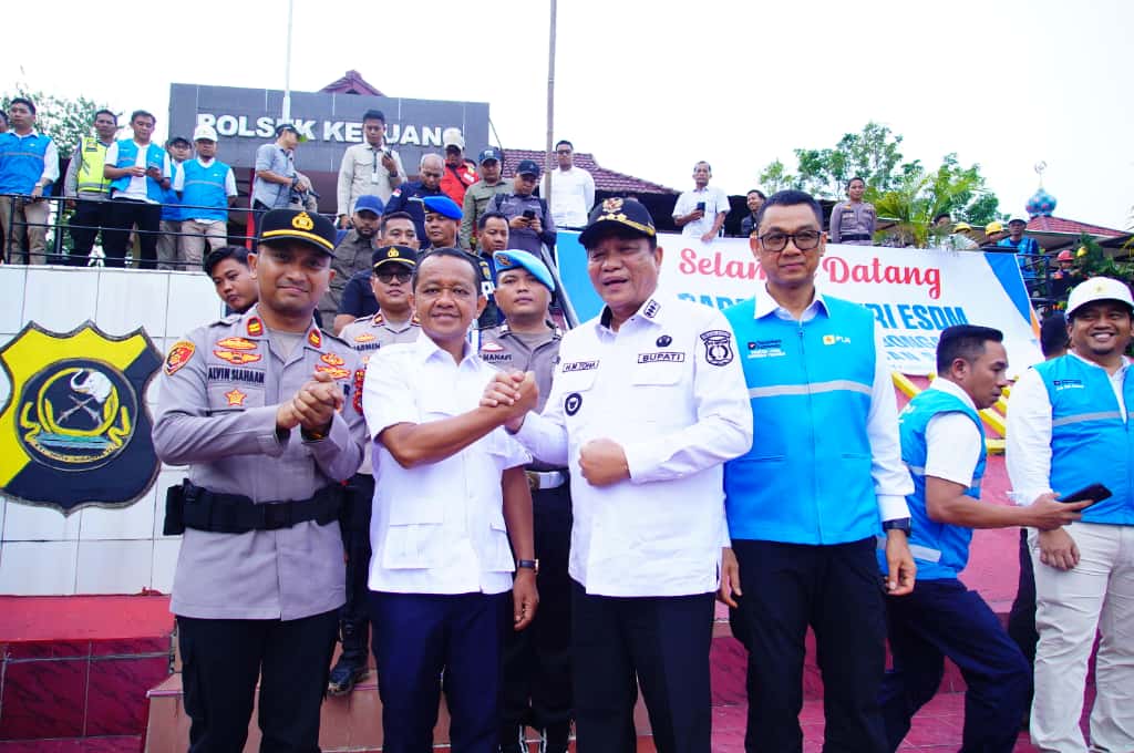 KELUANG — Bupati Muba H M Toha Tohet SH bersama jajaran Forkopimda Muba menyambut kunjungan kerja Menteri Energi dan Sumber Daya Mineral (ESDM) Bahlil Lahadalia bersama Gubernur Sumatera Selatan H Herman Deru, di Kecamatan Keluang, Kamis (16/10/2025).