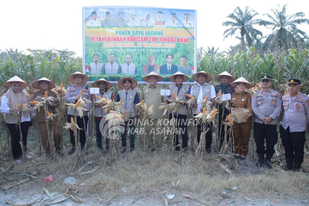 ASAHAN – Suasana penuh semangat mewarnai kegiatan panen raya jagung di Desa Teladan, Kecamatan Tinggi Raja, Senin (27/10/2025).