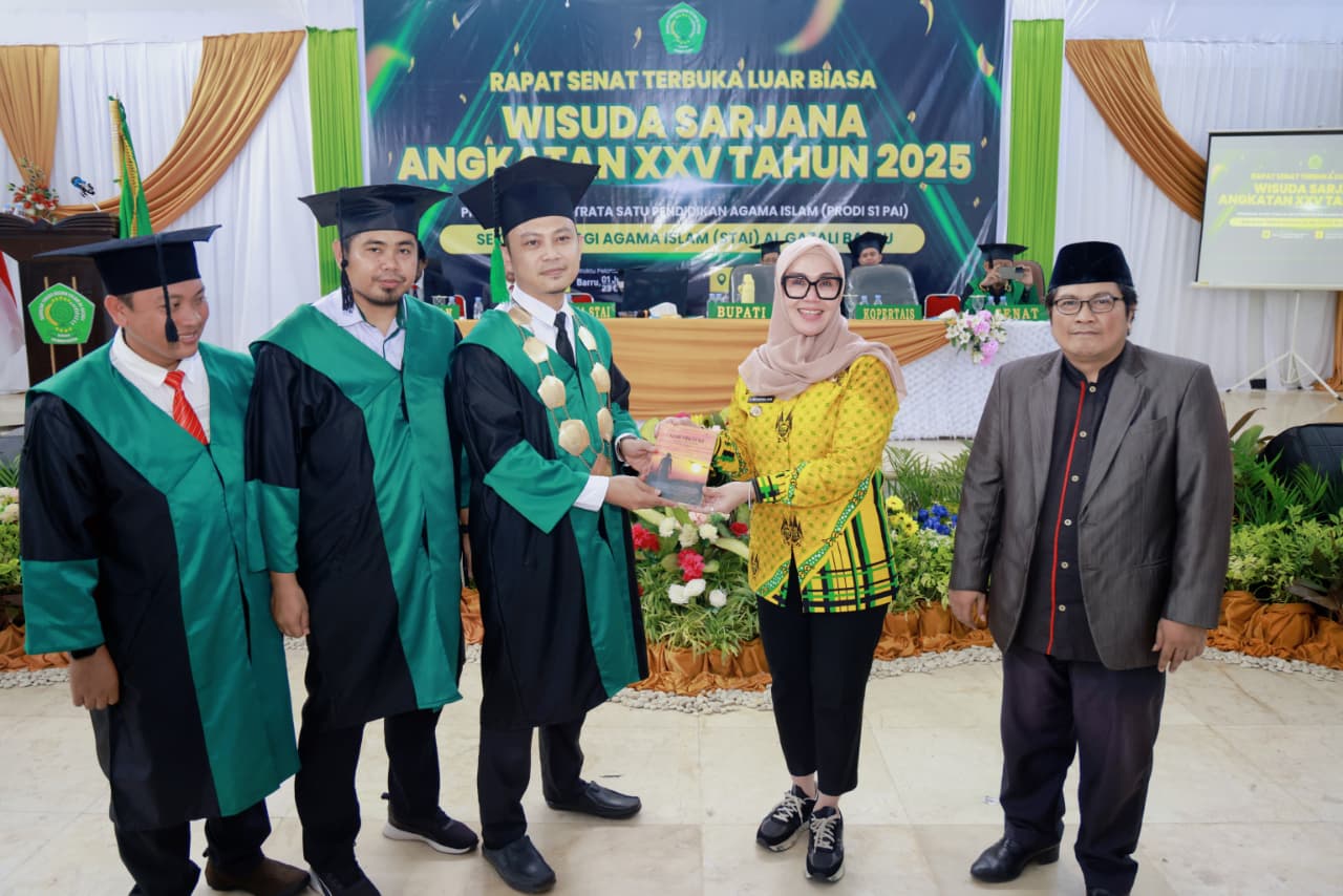 Barru – Bupati Barru, Andi Ina Kartika Sari, menghadiri Wisuda Sarjana Mahasiswa Sekolah Tinggi Agama Islam (STAI) Al Gazali Barru Program Studi Strata Satu Pendidikan Agama Islam (S1 PAI) di Gedung Islamic Center Kabupaten Barru, Salawesi Selatan, Kamis (23/10/2025).