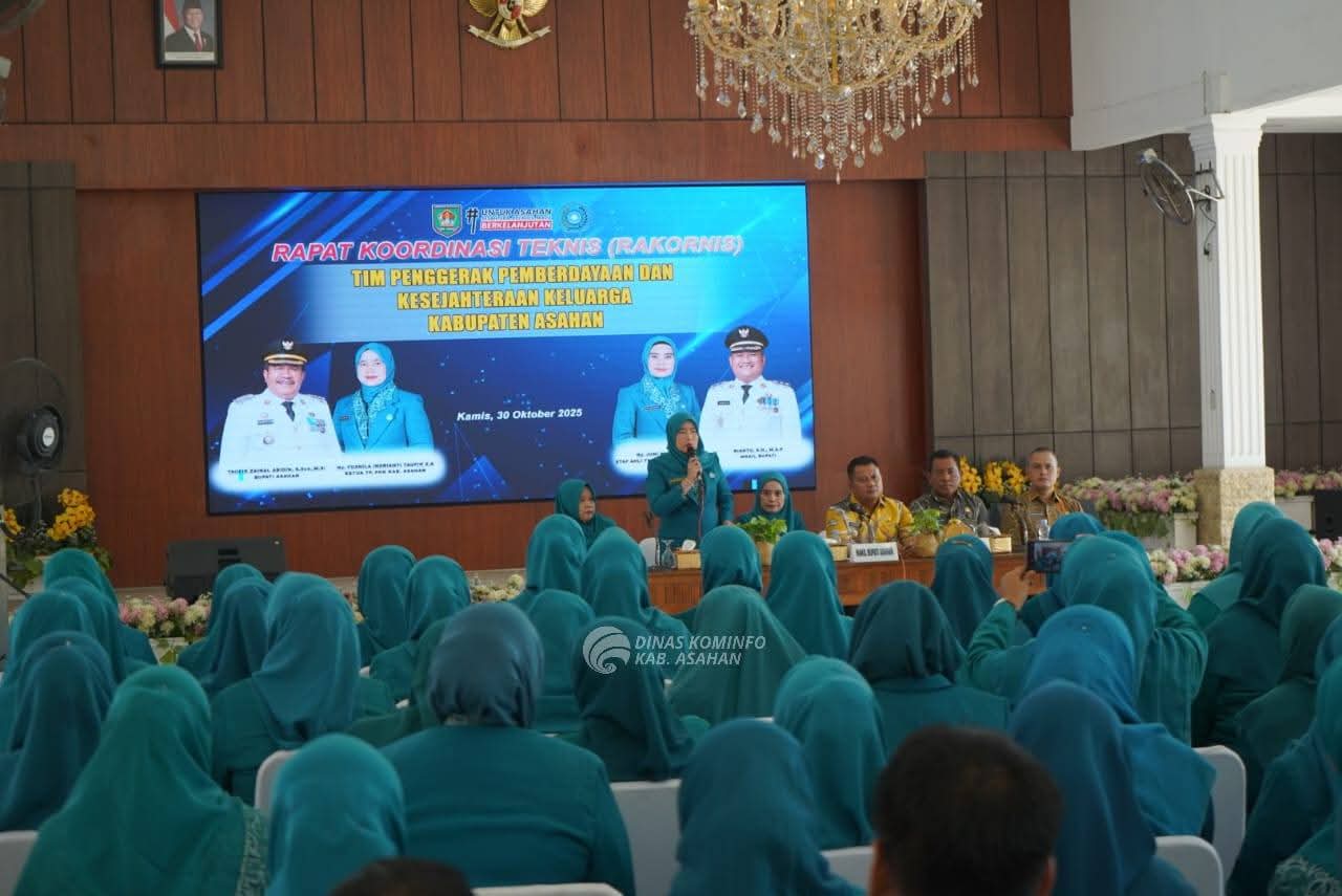 ASAHAN – Sinergi menjadi kunci utama dalam membangun keluarga yang berdaya dan sejahtera. Semangat inilah yang tampak dalam pelaksanaan Rapat Koordinasi Teknis (Rakornis) TP PKK Kabupaten Asahan yang digelar di Aula Kantor Bupati Asahan, Kamis (30/10/2025).