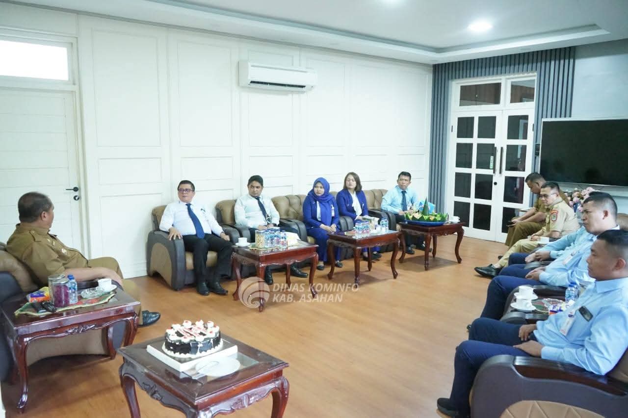 Pertemuan yang berlangsung hangat tersebut turut dihadiri oleh Kepala BPKAD Kabupaten Asahan, Kepala BKPSDM Asahan, Kepala Dinas Kominfo Asahan, serta jajaran Bank Sumut Cabang Kisaran. Kepala Cabang Bank Sumut Kisaran, Sadli Irawan, menyampaikan terima kasih atas dukungan dan kepercayaan Pemerintah Kabupaten Asahan terhadap kiprah Bank Sumut. “Kami berkomitmen untuk terus mendukung program-program Pemkab Asahan, terutama dalam memperkuat sektor ekonomi daerah dan memberikan pelayanan terbaik bagi masyarakat,” ujarnya. Kegiatan diakhiri dengan pemotongan kue ulang tahun dan sesi foto bersama sebagai simbol sinergi dan kemitraan yang solid antara Pemerintah Kabupaten Asahan dan Bank Sumut.(RD)