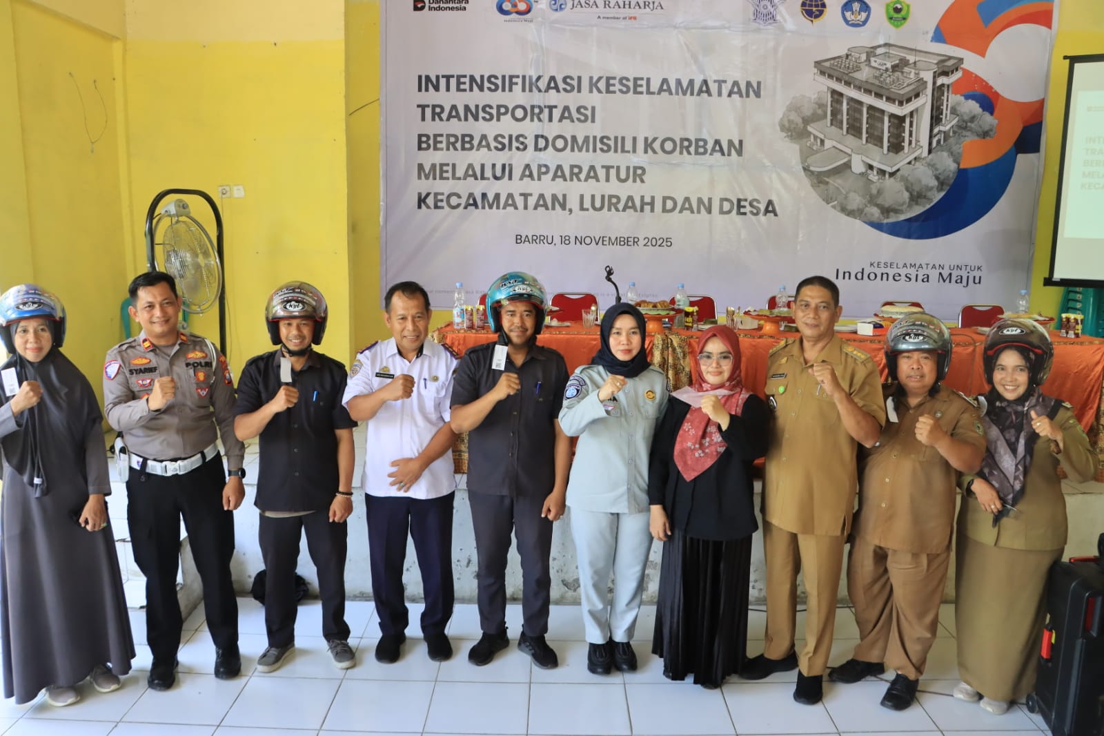 Barru – Jasa Raharja Cabang Parepare menggelar sosialisasi dan edukasi keselamatan transportasi di Aula Kantor Camat Barru, Kabupaten Barru, Sulawesi Selatan, Selasa (18/11/2025).