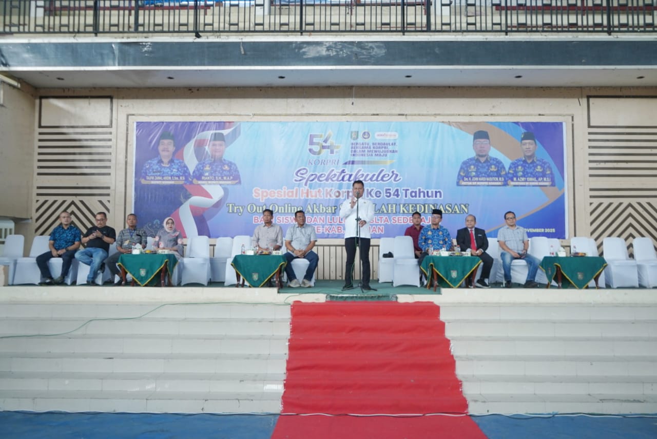 ASAHAH – Dalam rangka memeriahkan Hari Ulang Tahun Korps Pegawai Republik Indonesia (Korpri) ke-54, Dewan Pengurus Korpri (DPK) Kabupaten Asahan menggelar Try Out Online Akbar Sekolah Kedinasan yang diikuti ratusan siswa kelas X, XI, XII serta lulusan SLTA sederajat se-Kabupaten Asahan, Sabtu (29/11/2025).
